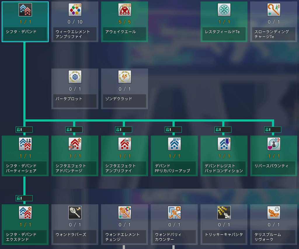 「バッドコンディションレジスト」「バッドコンディションリデュース」は微妙な性能をしているので、全ての主要なスキルが取れるこのツリーで良いでしょう。