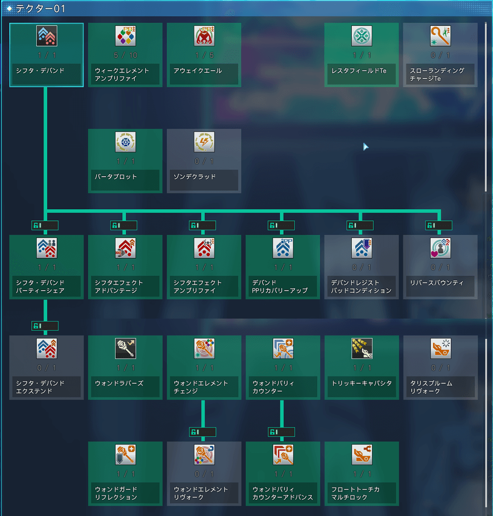 「ディフィートアドバンテージ」「ディフィートPPリカバリー」を10ずつ振る簡単なスキルツリーです。