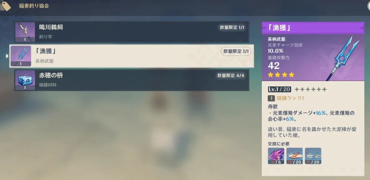 【原神】稲妻釣り協会 「漁獲」 雷電将軍 武器