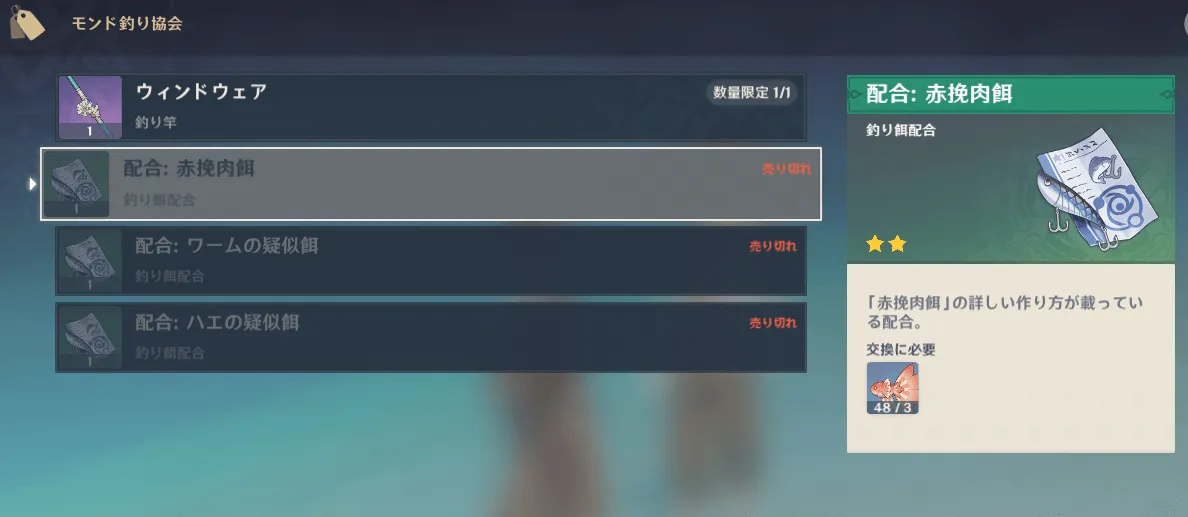 【原神】魚の餌 釣り竿 モンド釣り協会 ナンタック 果物餌 赤挽肉餌 ワームの疑似餌 ハエの疑似餌