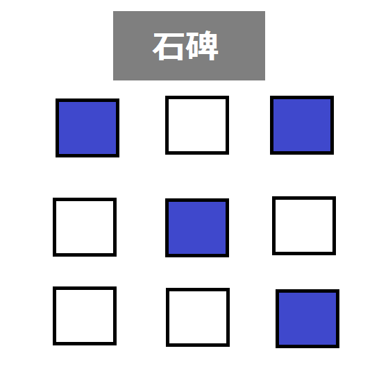 このギミックは、「ヒントの場所」の、「模様が変わる石」を「石碑の指示通りに模様を変える」ことでクリアになります。