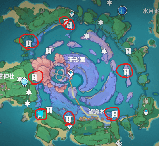 原神(Genshin_Impact)、海祇島各地に散らばっている謎のマークと、その全8箇所の位置、関連隠し実績について掲載しています。