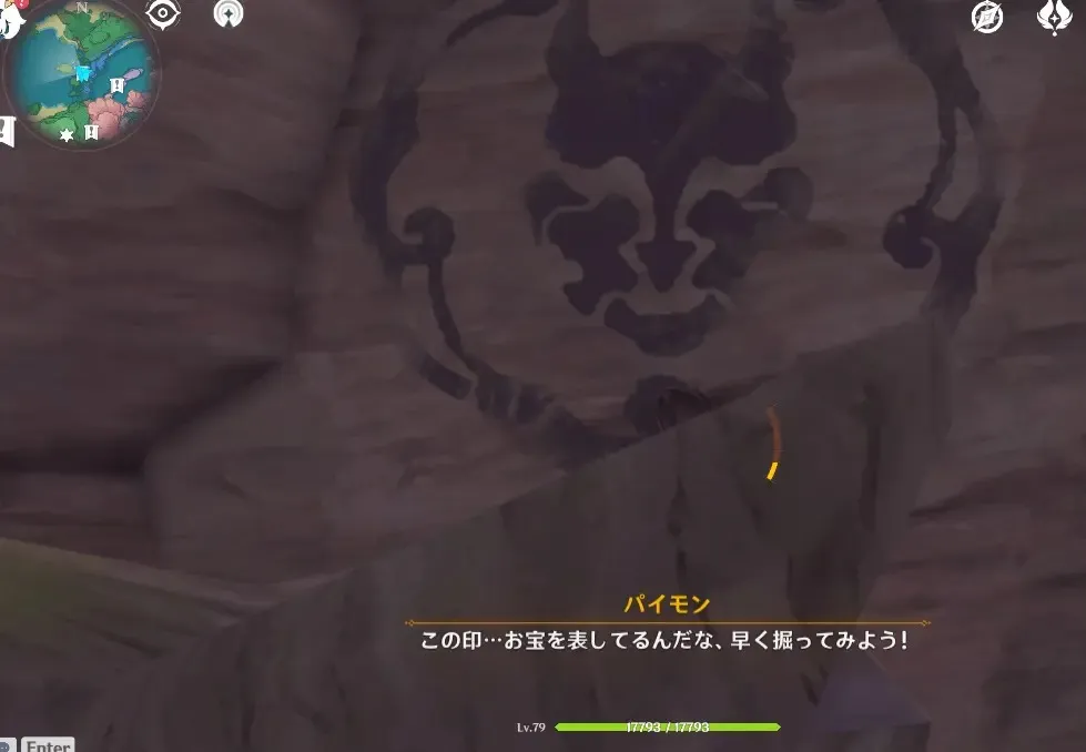 初期状態ではパイモンの「なんなんだこのマーク?」的な話が出るだけで終わってしまいます。