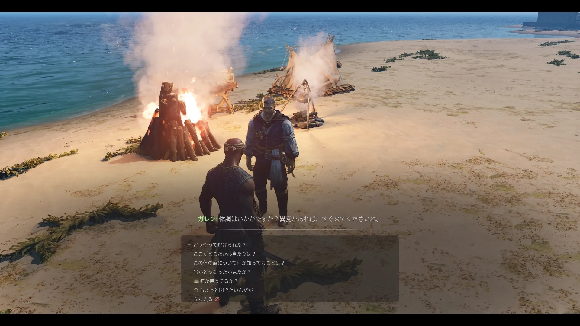- ここには生きている者は誰もいない。持ち主を失った所持品だけだ。他のキャンプ地も確認すべきだ。