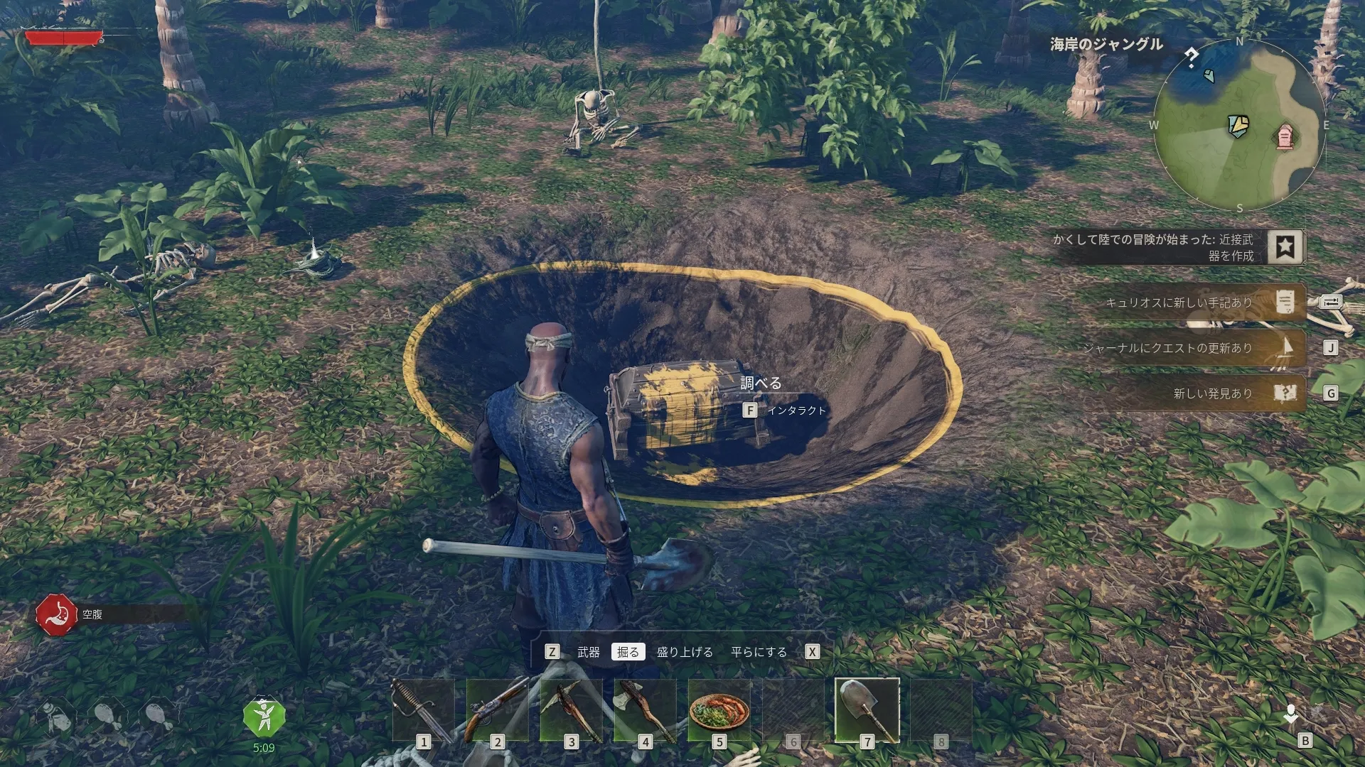 スコップを作成し、骸骨の前あたりの地面を掘りましょう。