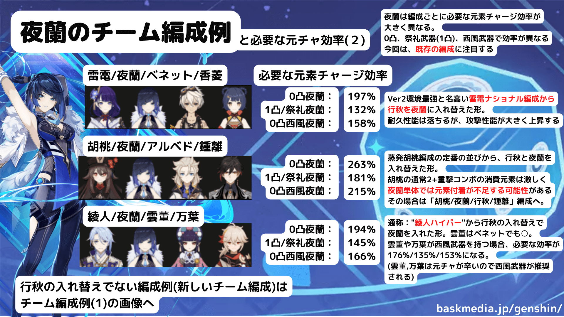 また、水元素の消費が激しい蒸発編成の場合、夜蘭単体では水元素の付着が足りない可能性があります。