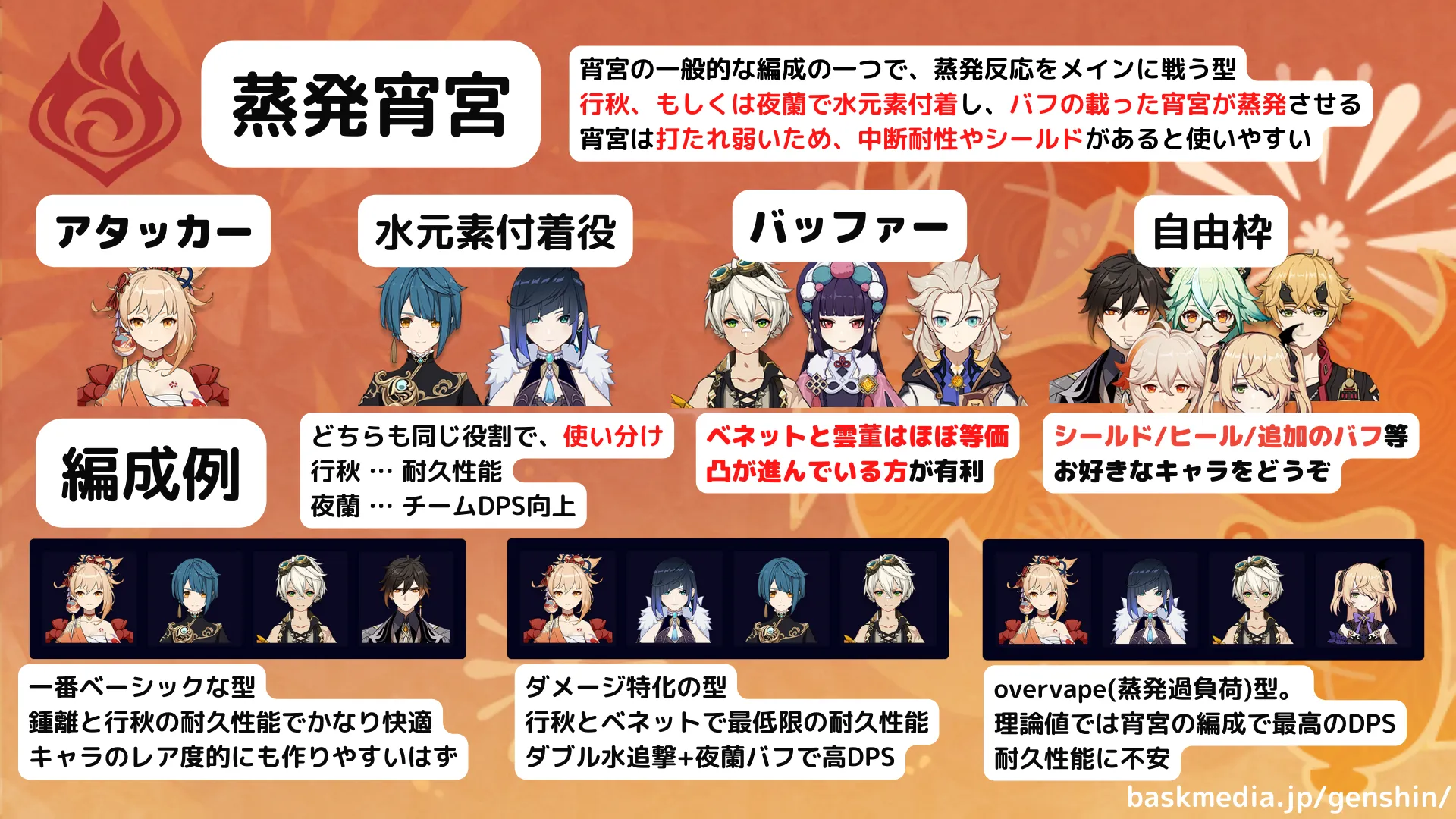 そのため、蒸発反応が発生する通常攻撃がズレてしまい、蒸発編成では思ったほど大きな向上にならないようです。